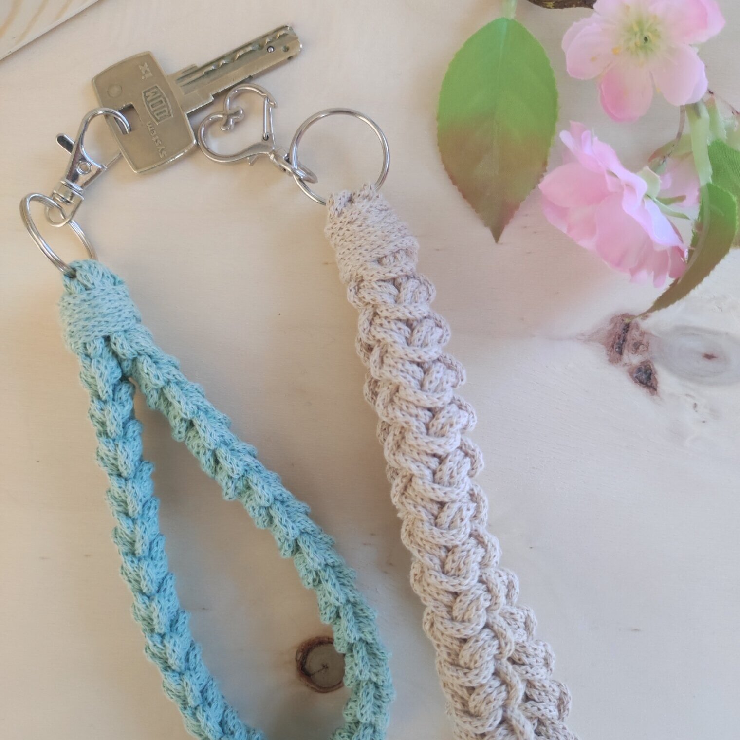 Handgefertigte Schlüsselanhänger aus 100% recycelter Baumwollkordel -